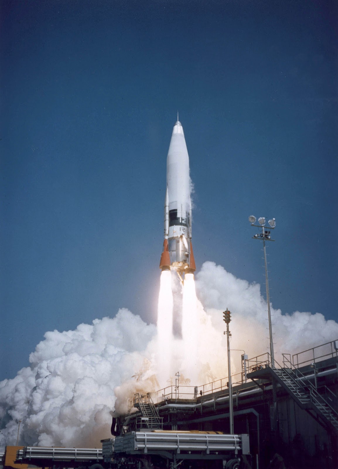 The Atlas's complicated, unconventional design proved difficult to debug compared with rocket families such as Thor and Titan which used conventional aircraft-style structures and two stage setups and there were dozens of failed launches during the early years. After watching an Atlas ICBM explode shortly after launch, Mercury astronaut Gus Grissom remarked "Are we really going to get on top of one of those things?" The numerous failures led to Atlas being dubbed an "Inter County Ballistic Missile" by missile technicians, but by 1965 most of the problems had been worked out and it was a reliable launch vehicle.