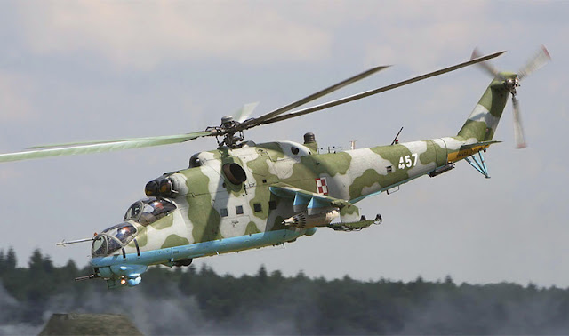 The Mil Mi-24 (Hind) is a large Russian helicopter gunship, attack helicopter and low-capacity troop transport with room for eight passengers. It is produced by Mil Moscow Helicopter Plant and has been operated since 1972 by the Soviet Air Force and its successors, along with more than 30 other nations.